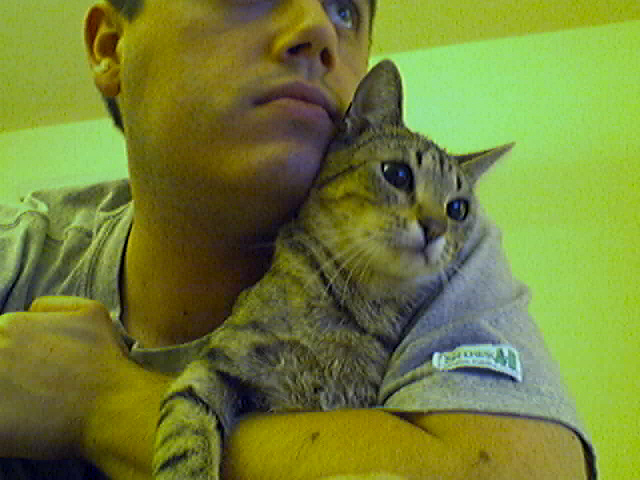 This is me with my roommate's cat Gavi (yes, the "boxer kitty!")